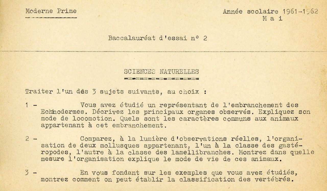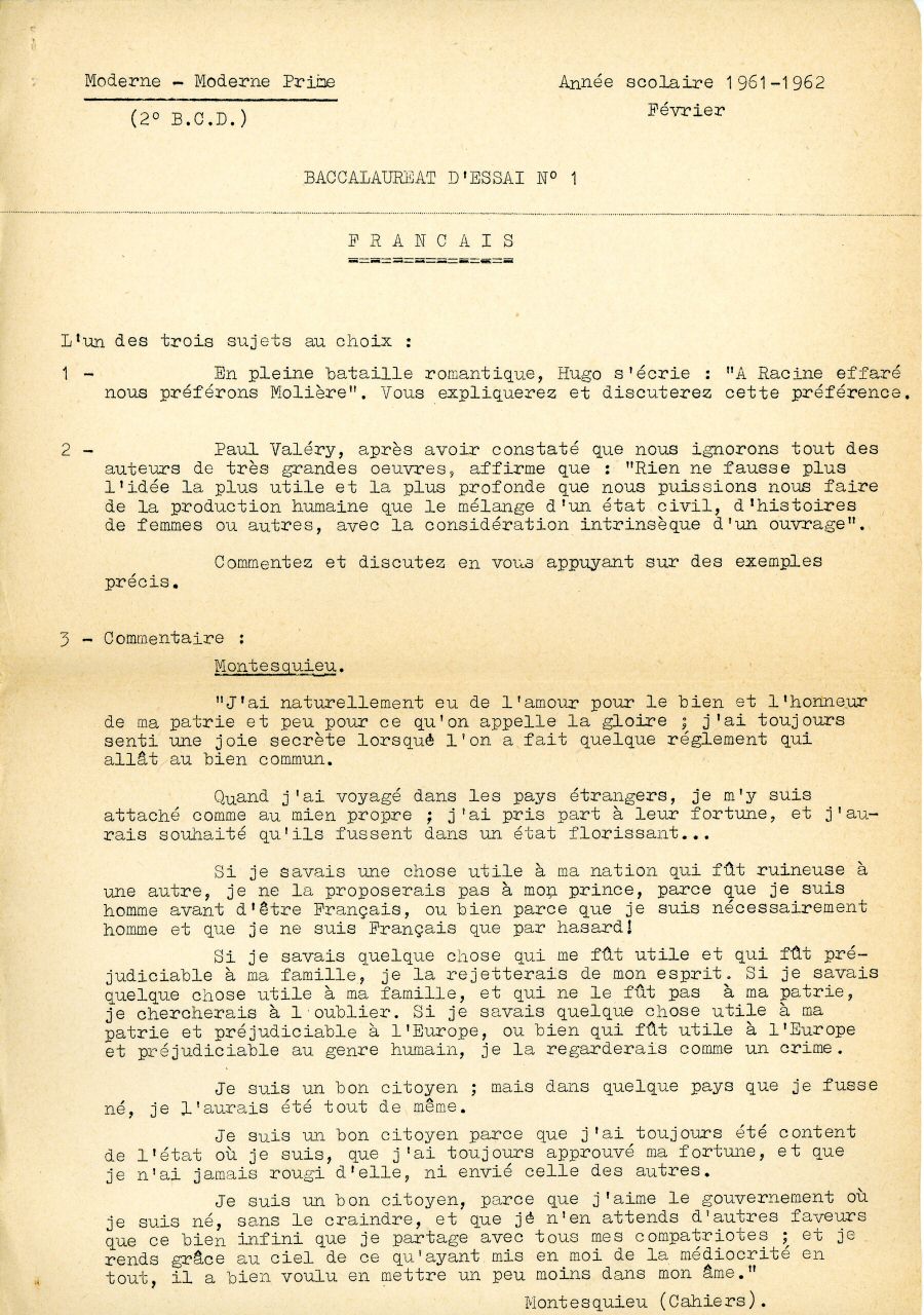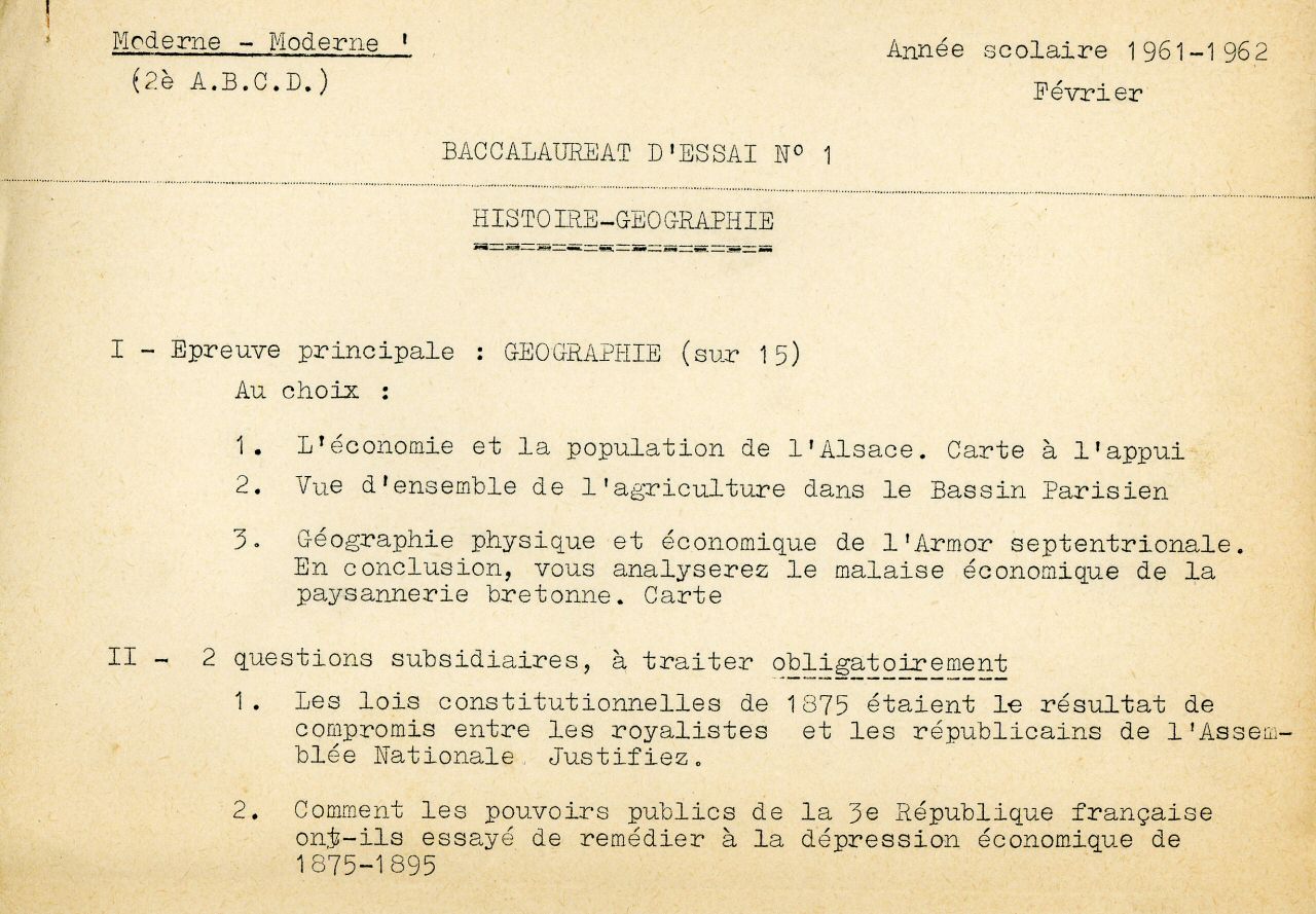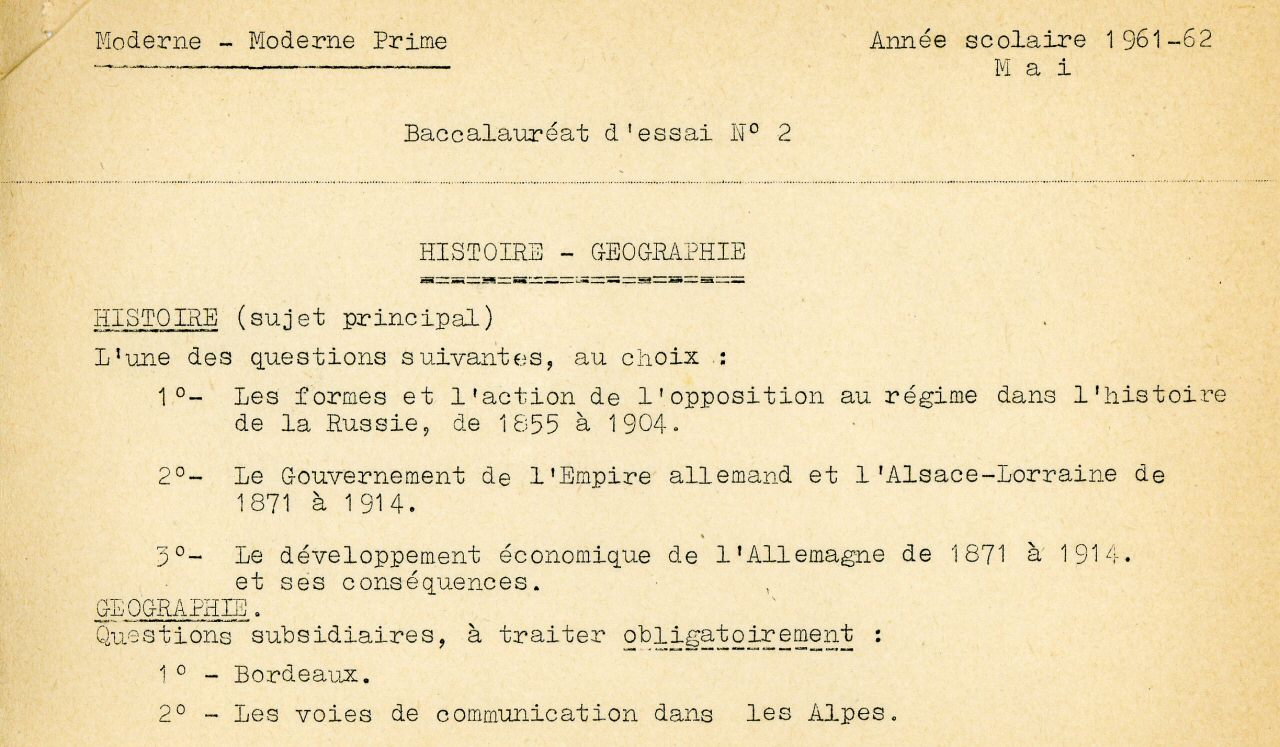 Baccalauréat d'essai n° 1