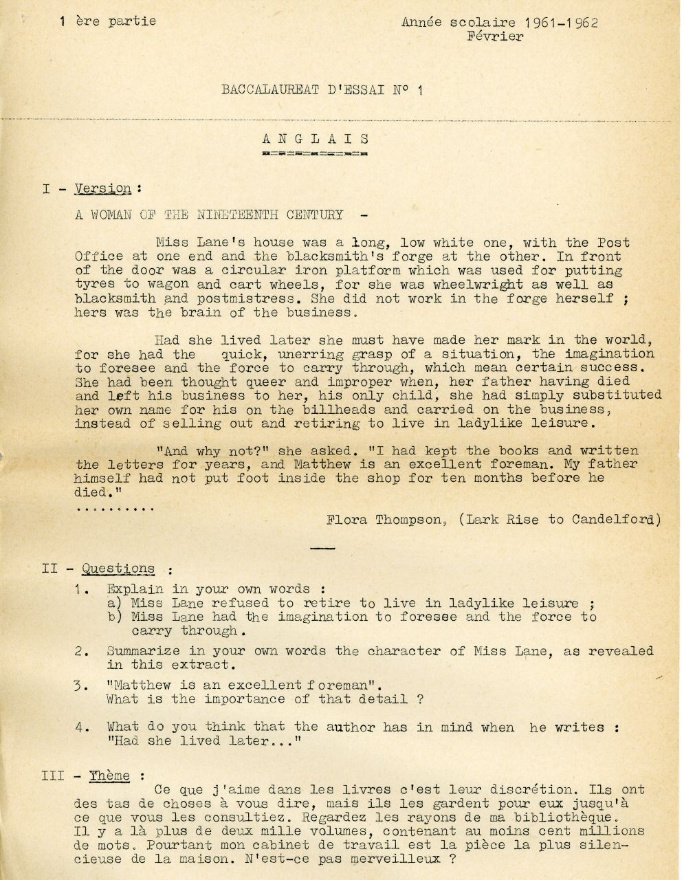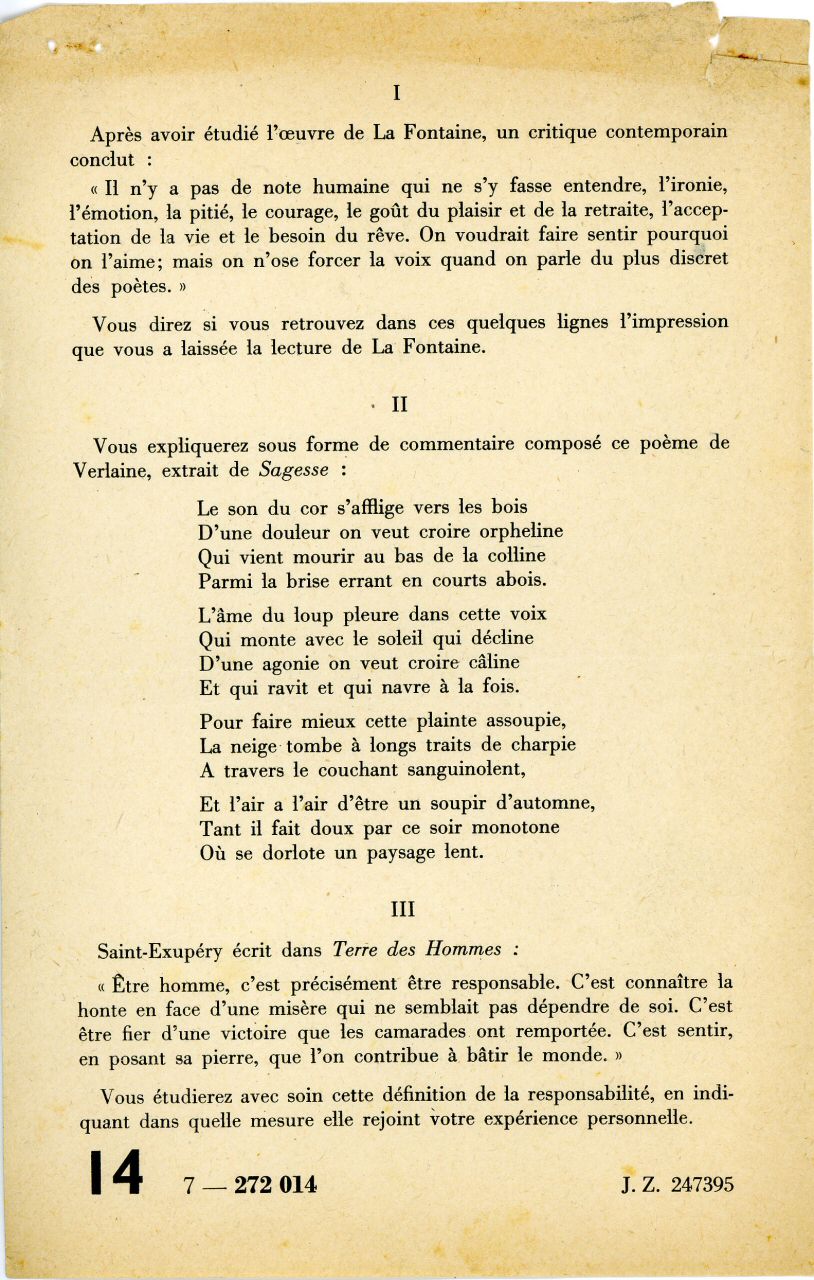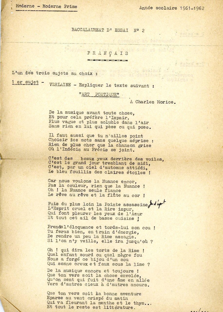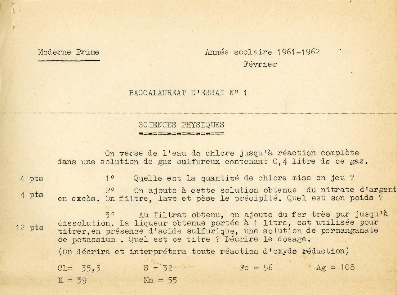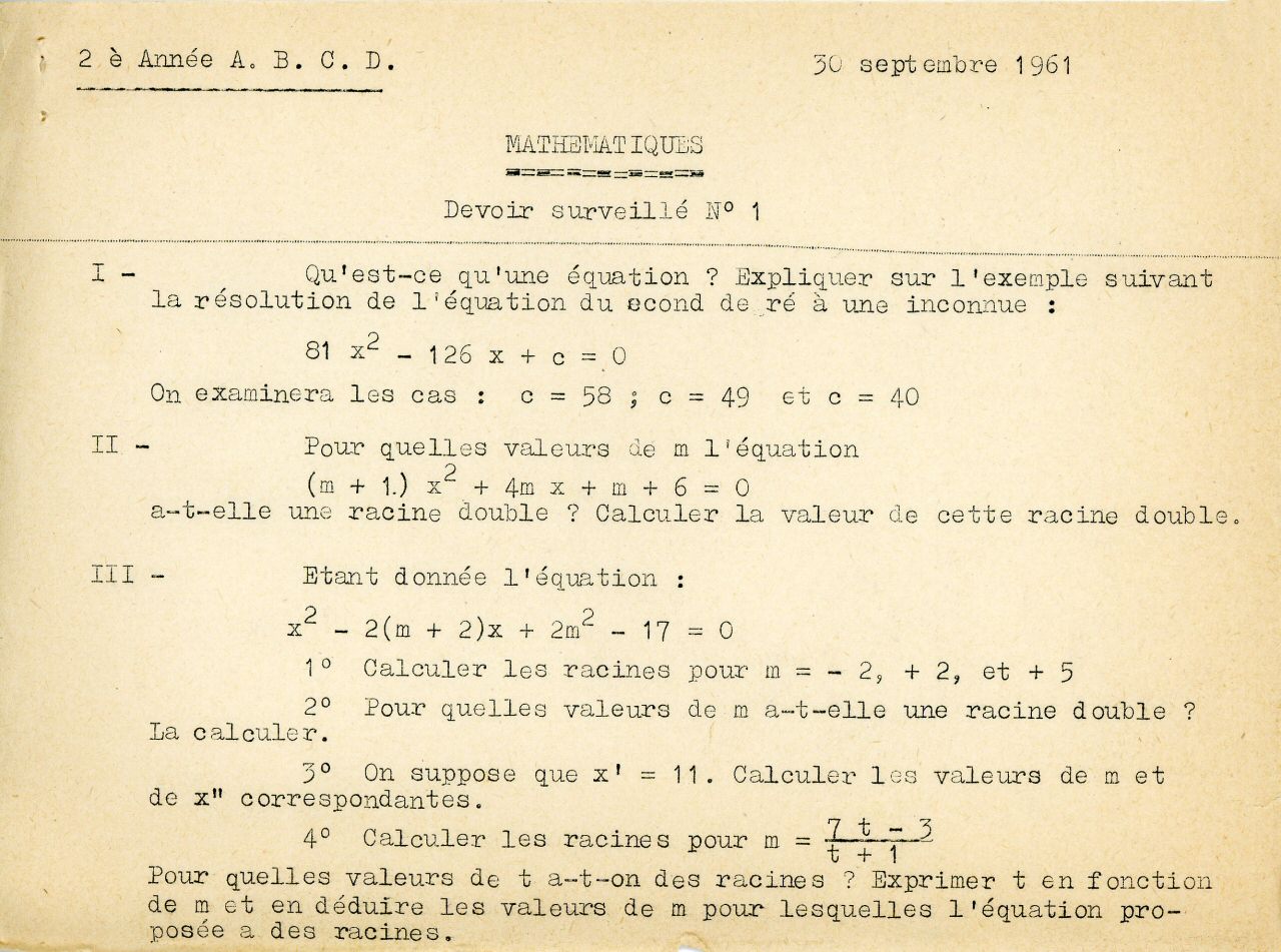 Enfin, passons aux choses sérieuses : cette année là fut l'année du 1er Bac, comme on disait alors.