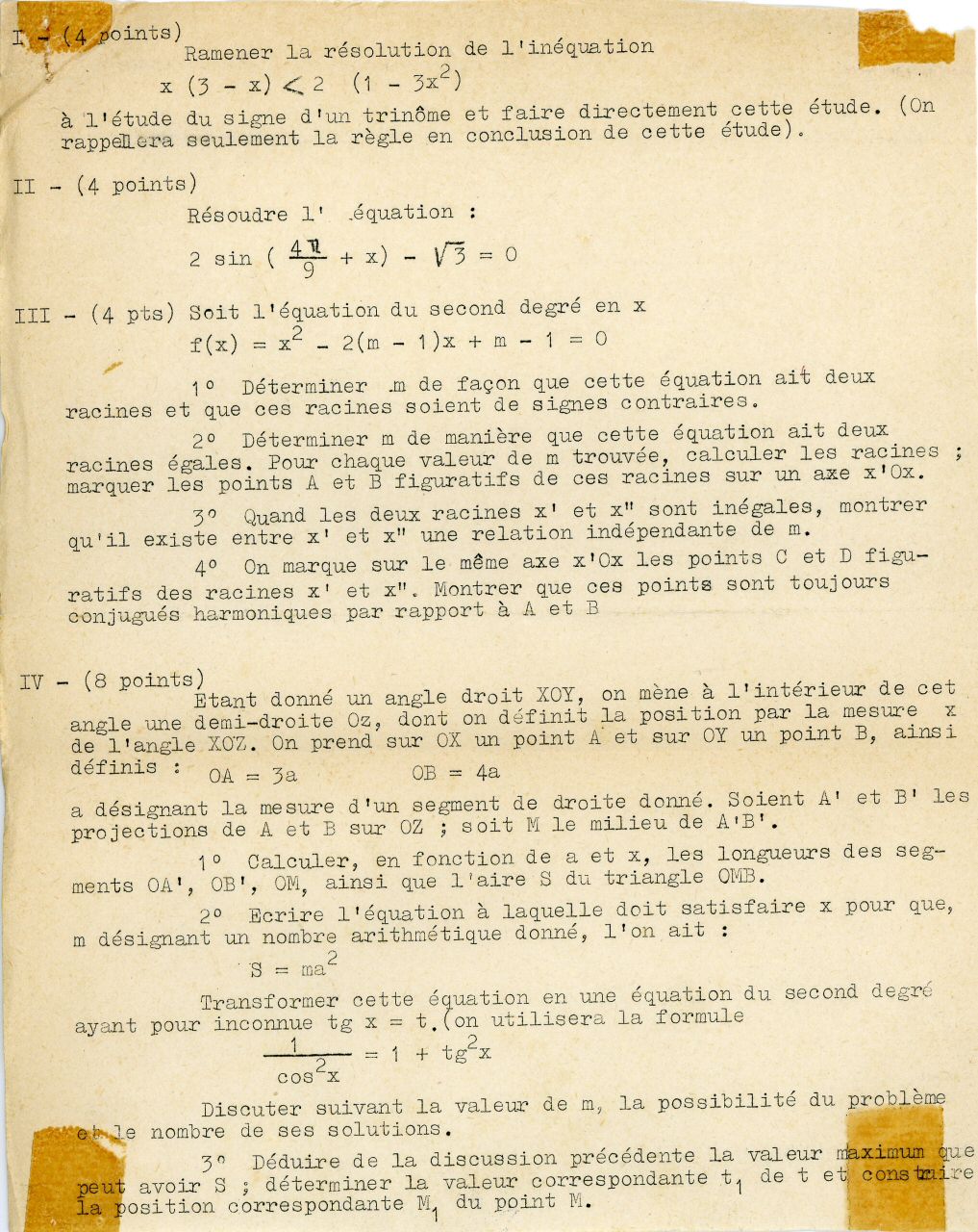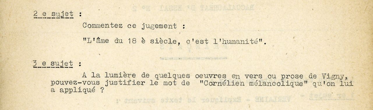 Notre camarade Jean-Pierre PONTUS, dit "Josh", grand archiviste devant l'éternel, a retrouvé dans ses vieux cartons (à peu près) tous les sujets des 2 bacs blancs et bien sur, ceux du vrai baccalauréat, le 1er du nom.