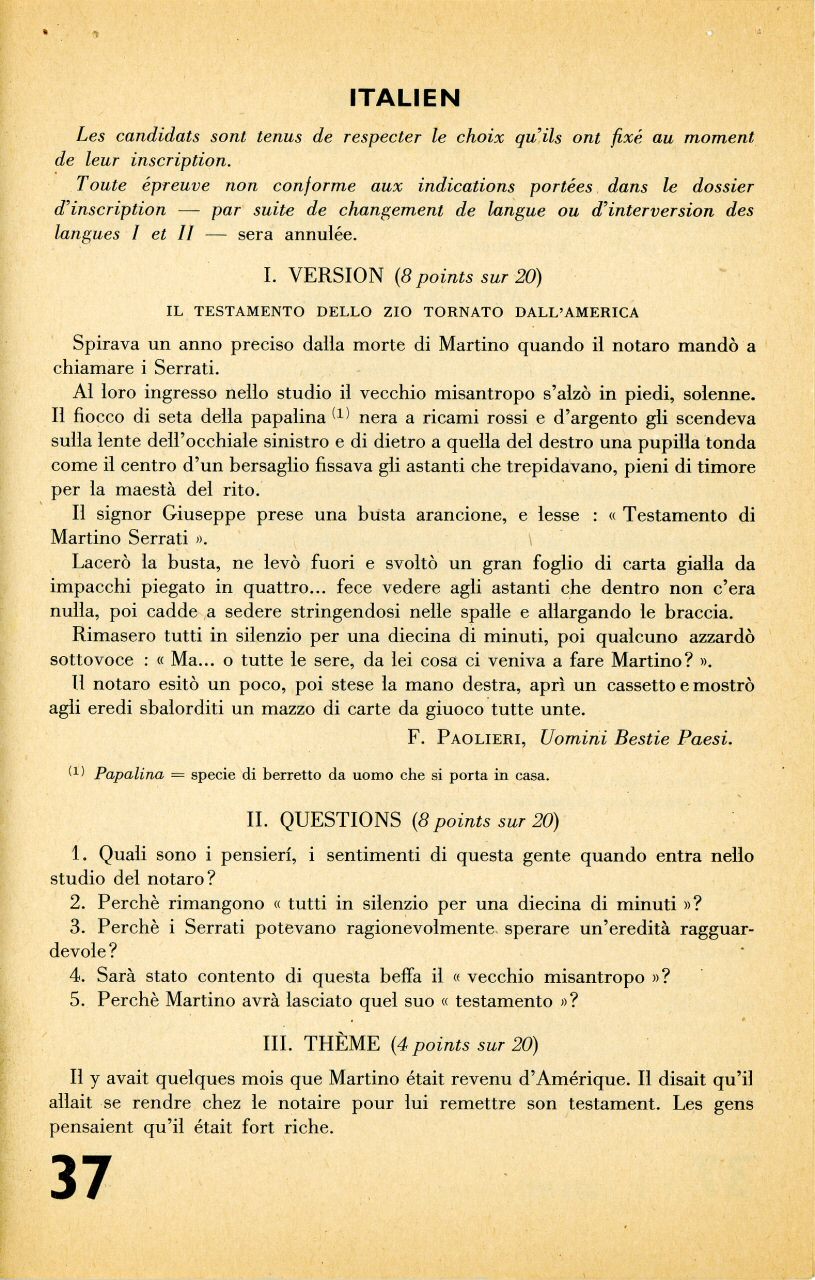 Alors, à vos papiers et à vos crayons !... Et toute tricherie sera sévèrement sanctionnée !...