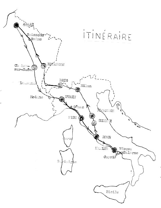 Christian SANTERNE a retrouvé le bulletin qui retraçait ce voyage de 15 jours. De quoi le revivre jour après jour, comme si vous y étiez encore. Cliquez sur la carte pour télécharger ce document. ("voyage_en_italie.pdf").