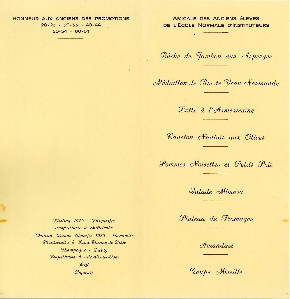 Heureusement, les verres se remplirent, les gosiers sentirent passer des effluves rassurantes et c'est tout rassérénés qu'on attaqua un menu somptueux, que Jean-Pierre PONTUS a retrouvé dans ses archives: