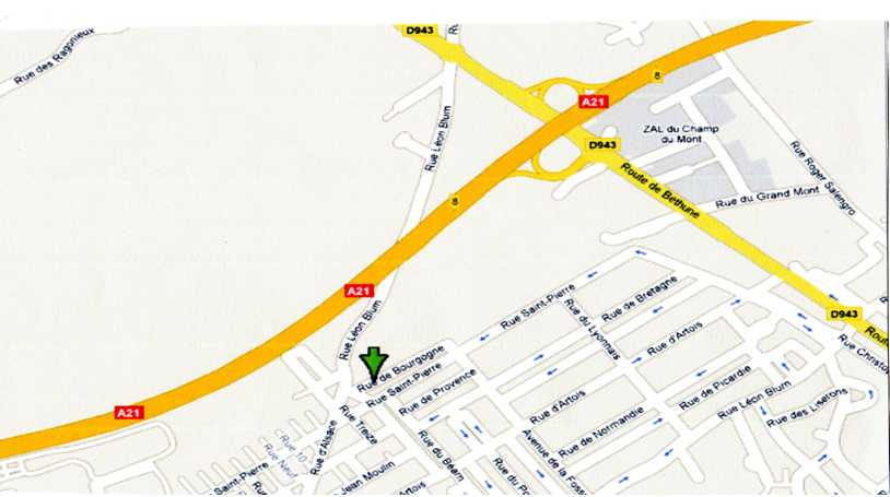 En venant de l’A21 :sortie 8 Lens ouest, au premier rond point ,direction Loos en Gohelle, Béthune, au deuxième rond point prendre la rue Léon Blum puis à gauche rue de Bourgogne( la chaîne des terrils est fléchée)