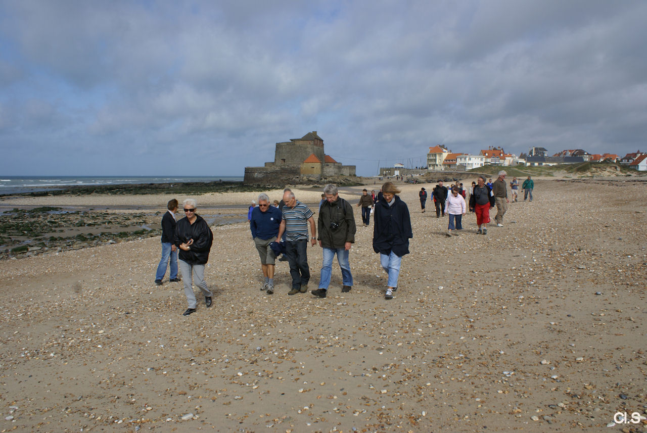 Météo France n'était pas optimiste, mais pourtant, une fois de plus, le temps fut clément. Nous avons marché sur la plage jusqu'au Fort d'Ambleteuse, par une forte marée basse ce matin là. Durée de la marche: 1 heure 30 environ.