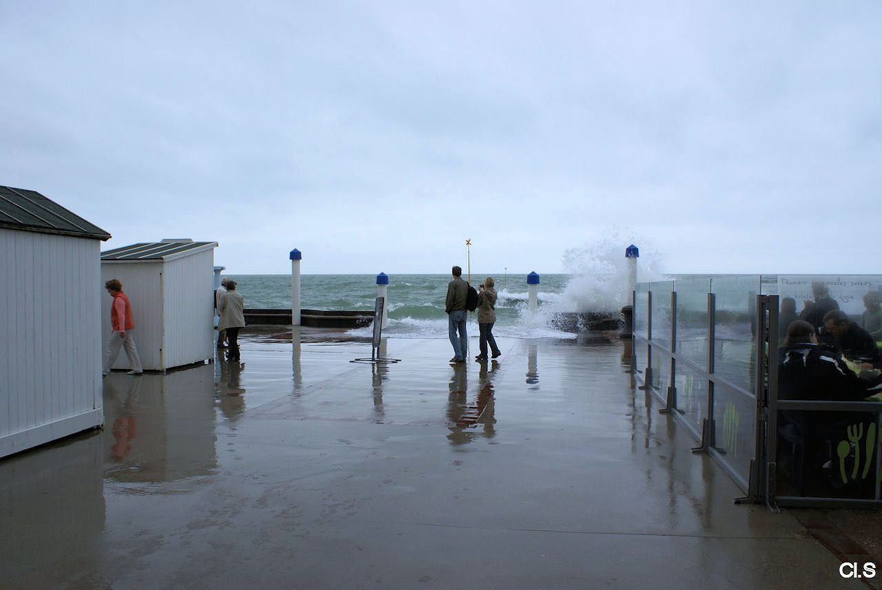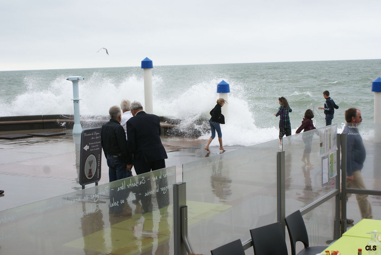 Nous avons pu assister au spectacle d'une très forte marée, qui avait attiré beaucoup de monde ce jour là sur la côte..