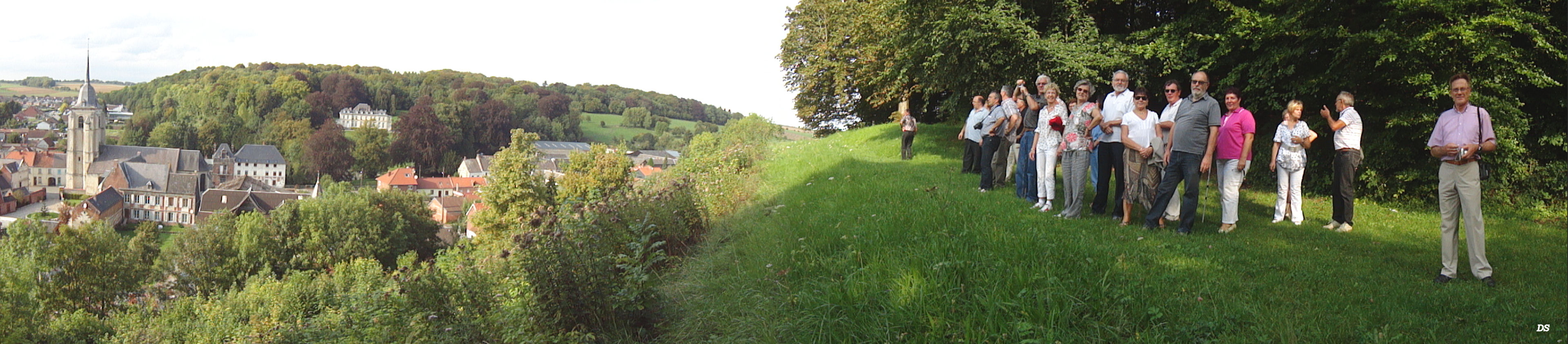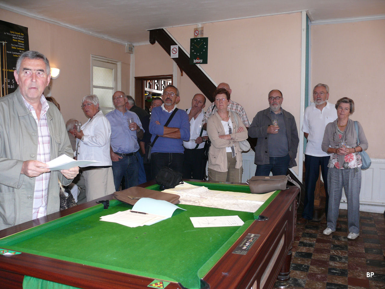 16H30: après le repas, courte balade « digestive » à Pas-en-Artois sur les hauteurs. On a pu jouir d'un beau panorama et écouter avec attention et intérêt les explications « historiques » de François LEFEL, maire de la commune, qui fut notre guide pour cette balade.