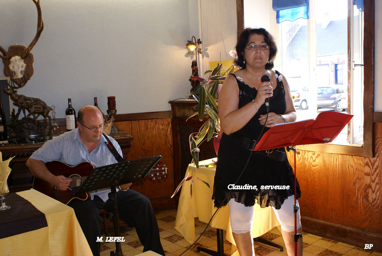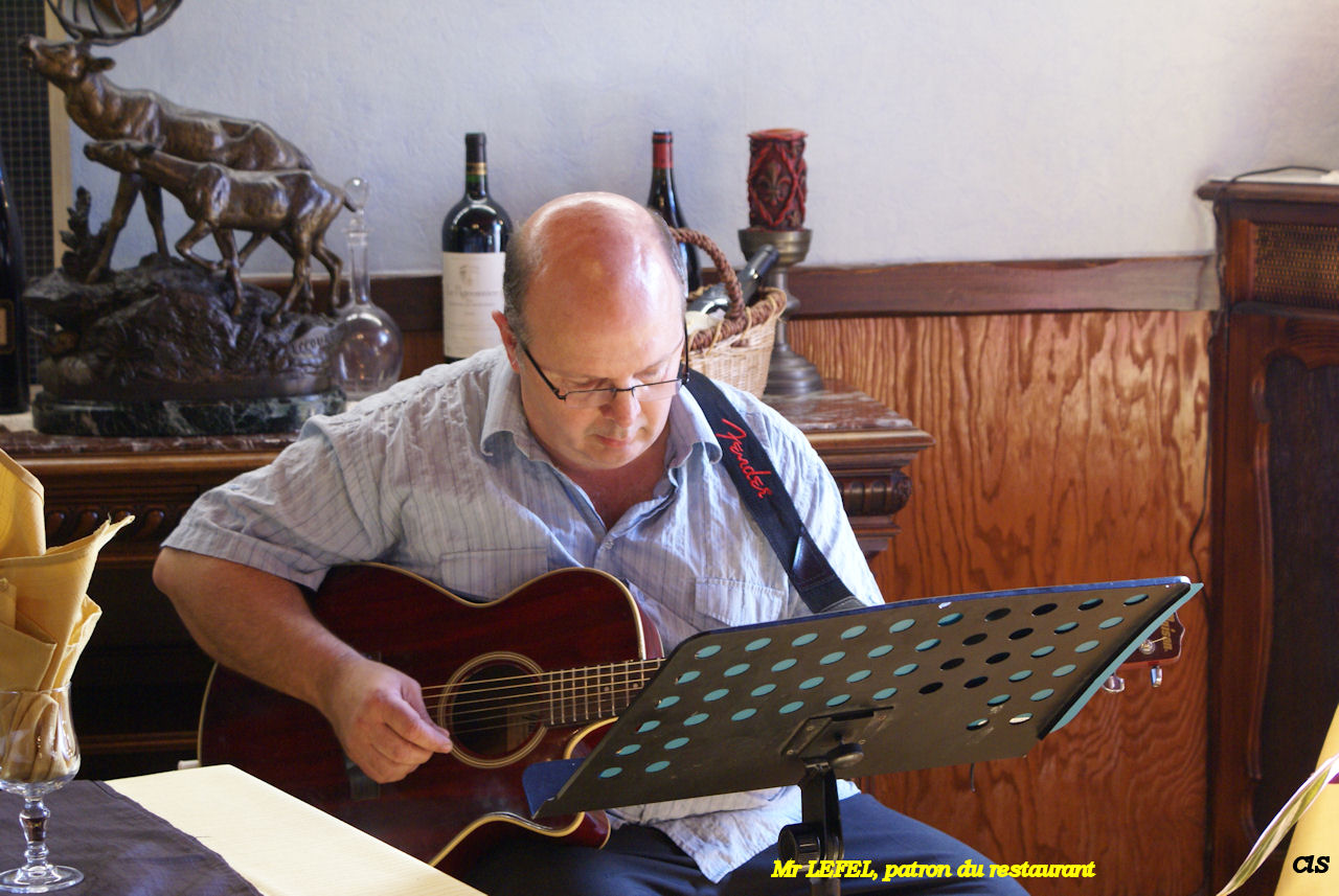 Au cours du repas, nous avons eu droit à une aubade par le patron, François LEFEL, maire de la commune et excellent guitariste, accompagnée au chant par Claudine, serveuse au restaurant depuis de nombreuses années. Très agréable.