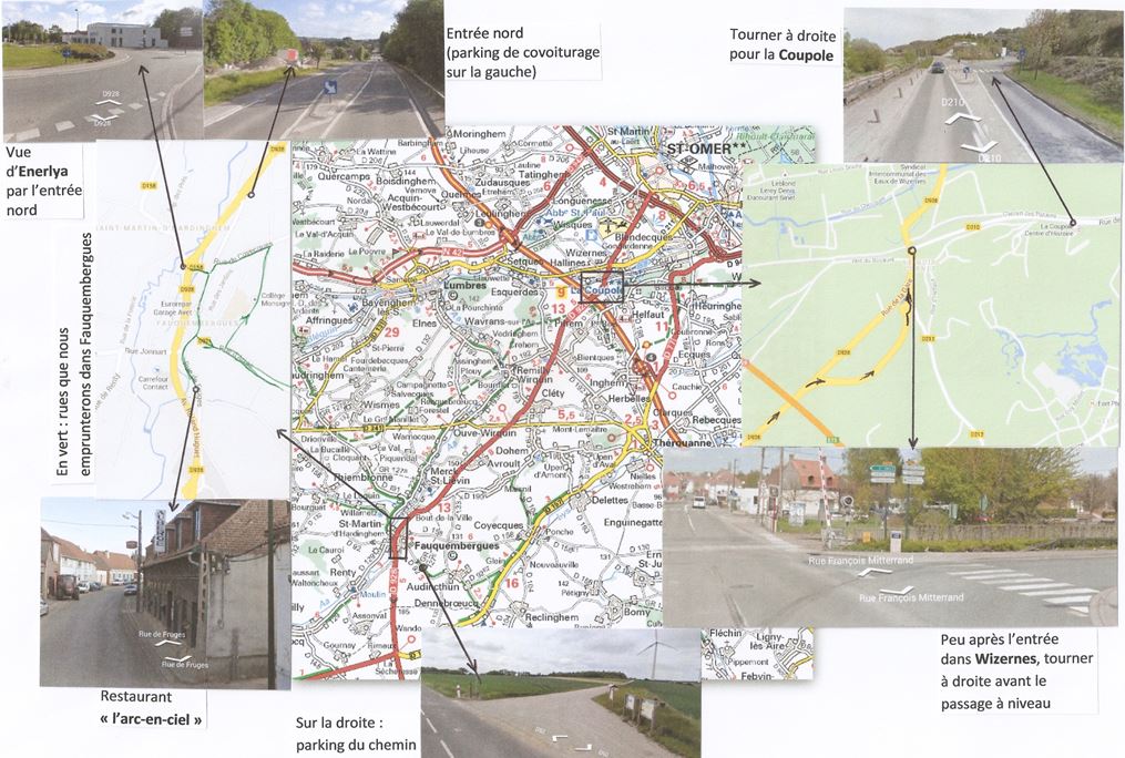 Pour le stationnement, il y a environ 10 places à ENERLYA mais ce sera insuffisant. Alors, vous devrez aller, soit dans une rue de Fauquembergues (quelques places sont prévues le long de la D928, près des terrains de tennis), soit dans le parking de co-voiturage, à l’entrée nord de Fauquembergues (ceci me semble être la meilleure solution pour ceux qui n’ont pas peur de faire un petit 400 m à pied), soit sur la place de St-Martin d'Hardinghem, à environ 250 m (dans ce cas, au rond-point, vous allez en direction de l’entrée d’ENERLYA et vous continuez. Après 2 grands virages, vous avez la place sur votre gauche).