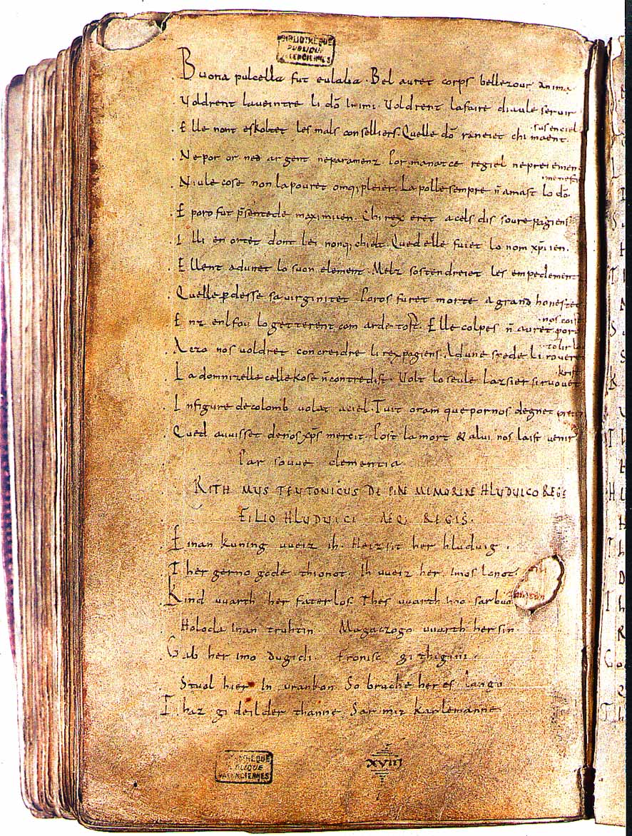 Composée vers 880, c'est vraisemblablement le premier texte littéraire écrit dans une langue romane différenciée du latin, une "romana lingua" marquée par d'importants changements phonétiques et morphosyntaxiques. Il constitue un document paléographique majeur. Pour en savoir plus à propos de la Cantilène de Sainte-Eulalie, cliquez ici...