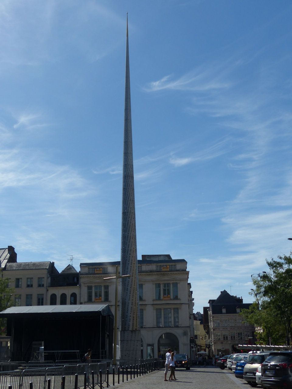 - la Place d'Armes avec son magnifique Hôtel de ville et son aiguille "Litanie (2007 - Valenciennes)".