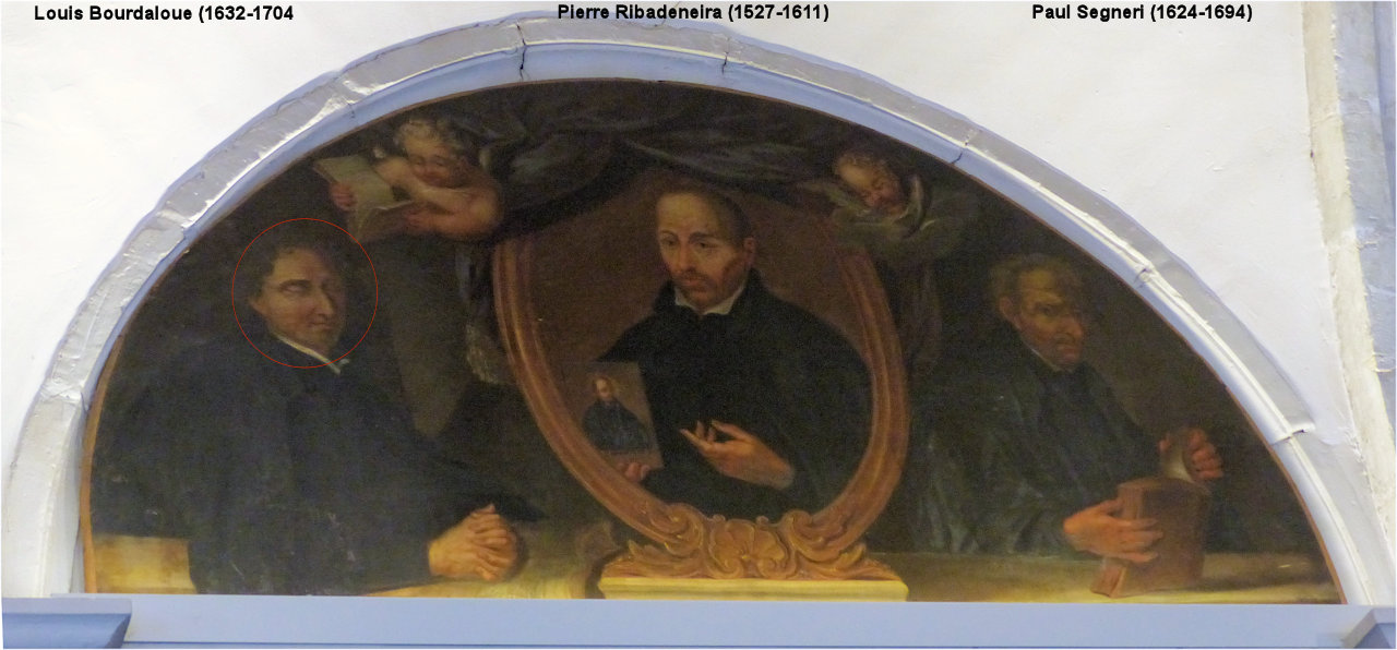 Notre guide a insisté sur l'un des tympans de voussoir sur lequel figure le jésuite Louis BOURDALOUE (1632-1704), yeux fermés.