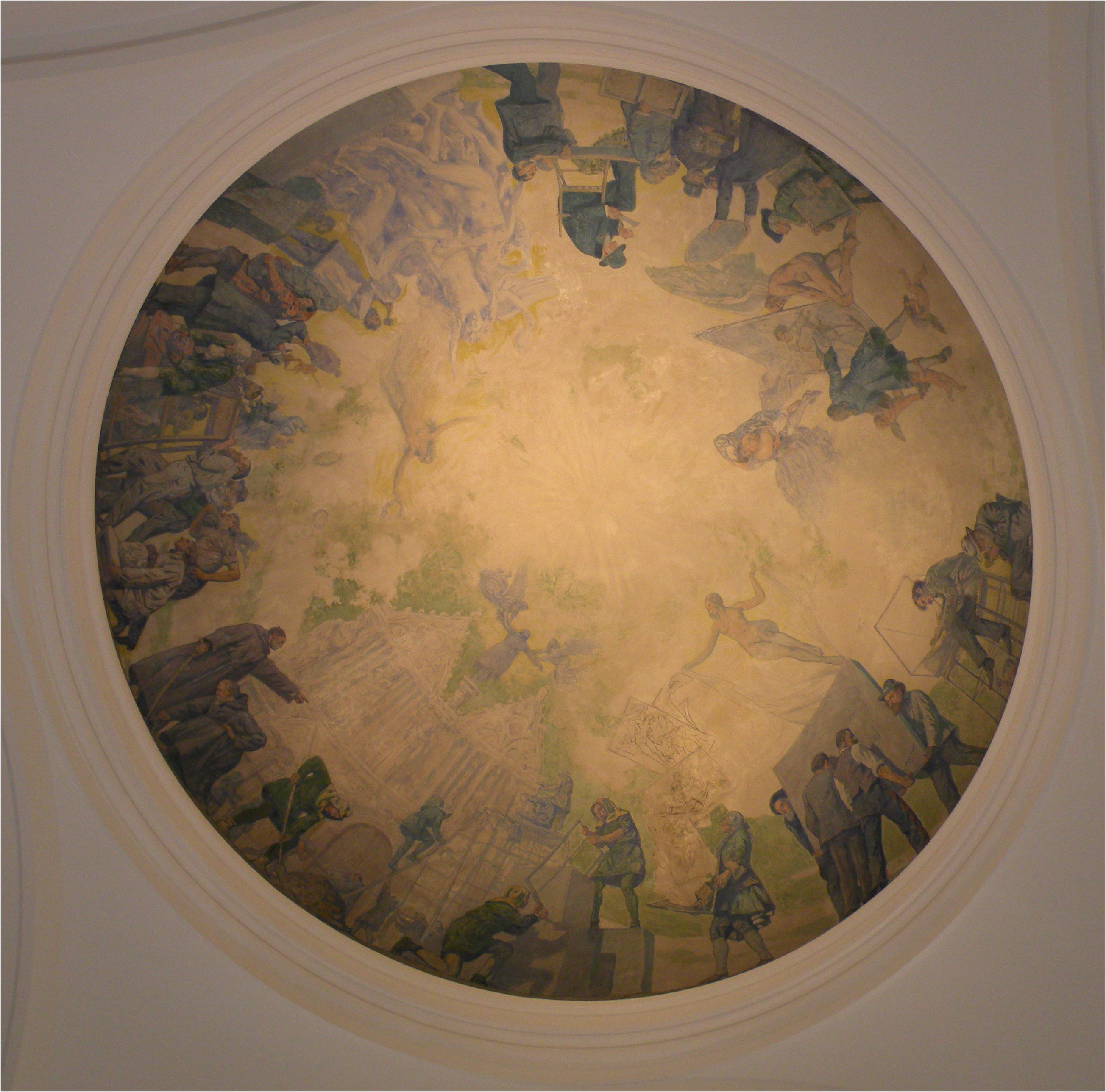 C'est le peintre Lucien JONAS qui orna la magnifique coupole dominant l'entrée, en 1922, suite à une commande dont l'initiative revient au conservateur Adolphe LEFRANCQ. Le décor que nous voyons aujourd'hui ("Les artistes en procession") fut peint en quelques semaines directement sur le plâtre.