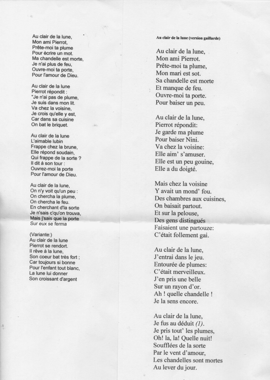 Michel KASPERSKY nous a fait redécouvrir "Au clair de la lune" cette innocente comptine enfantine, grâce à une explication de texte qui aurait surement ravi "Ch'Boeu", puis il nous l'a interprétée dans une version non édulcorée de Colette RENARD. (Cliquez sur le lien pour lire)
