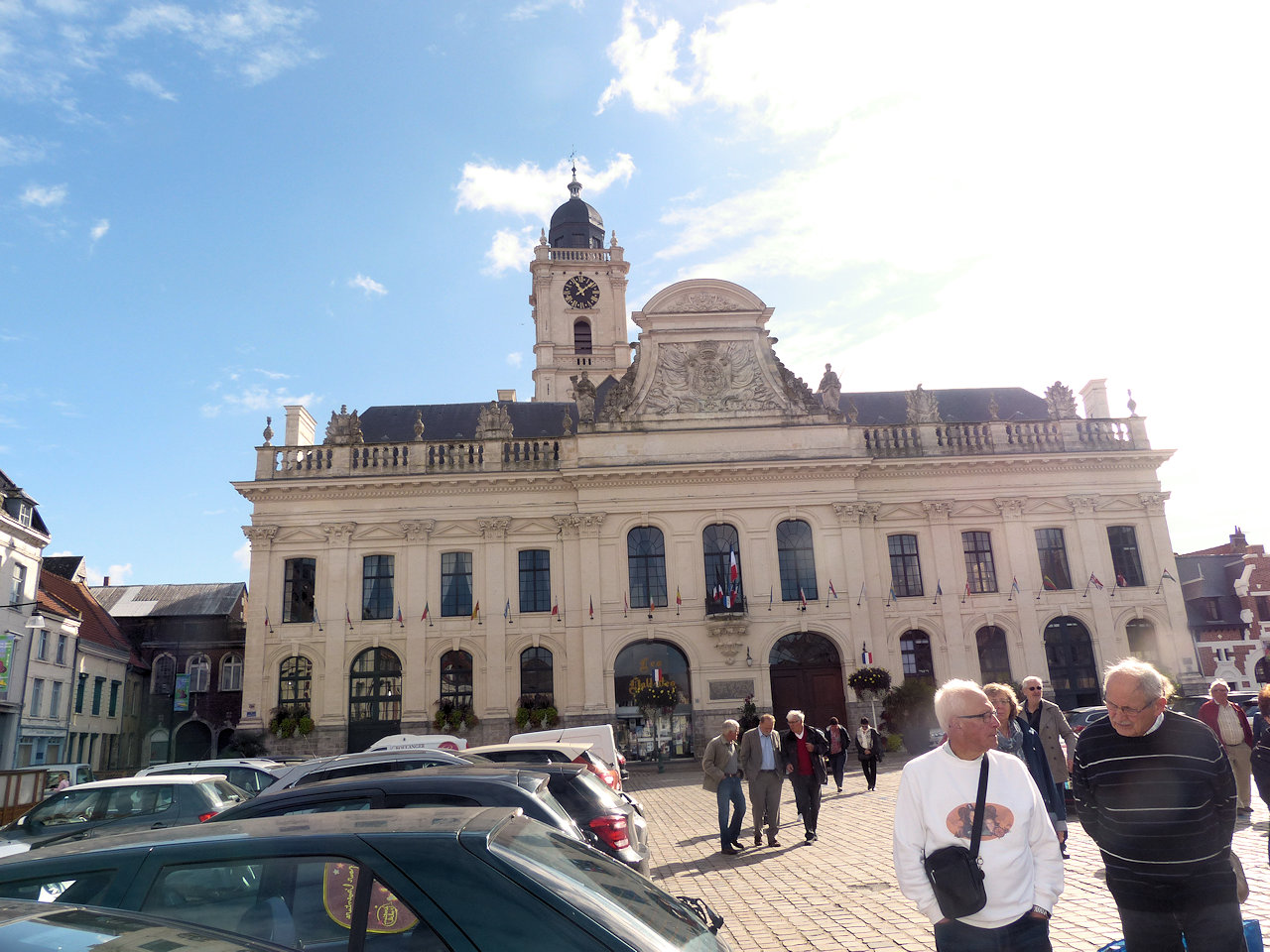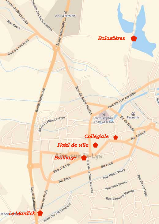 Je n'ai pas pris en note les innombrables renseignements fournis par notre collègue Jean FOURNIER tout au long de cette agréable promenade sous le soleil d'Aire-sur-la-Lys. Je salue ici son éloquence, sa passion pour l'histoire de la ville, et son impressionnante mémoire. En voici quelques éléments remémorés grâce à Internet: