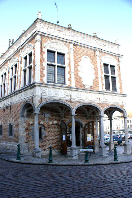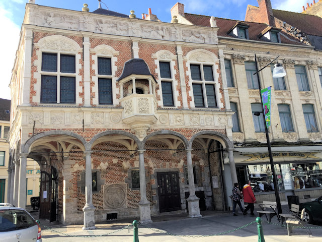 En quittant la Grand-Place, nous avons emprunté le passage des Hallettes sous l'Hôtel de Ville : les poutres, les briques diversement colorées et le plafond voûté en ogive méritent l'attention. Dommage qu'on ait jugé bon d'encombrer ce passage de constructions très disgracieuses qui encombrent et défigurent l'endroit.