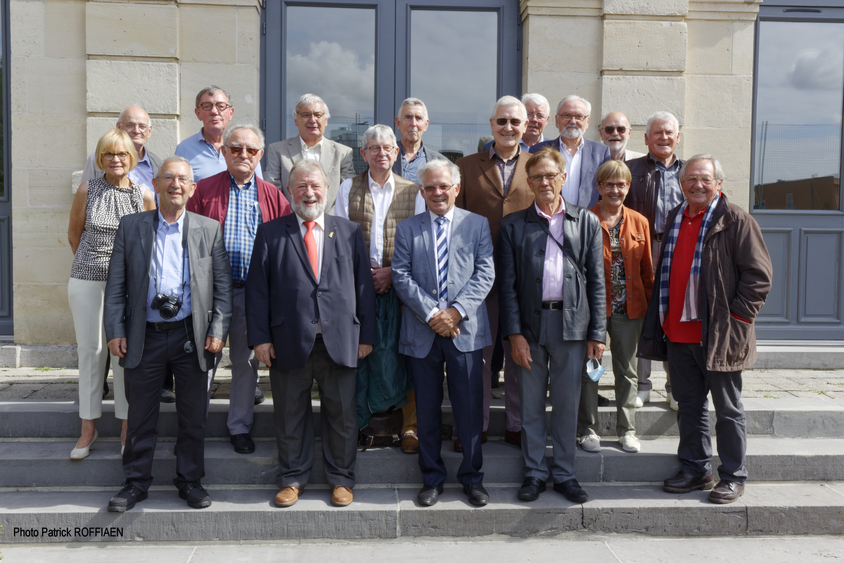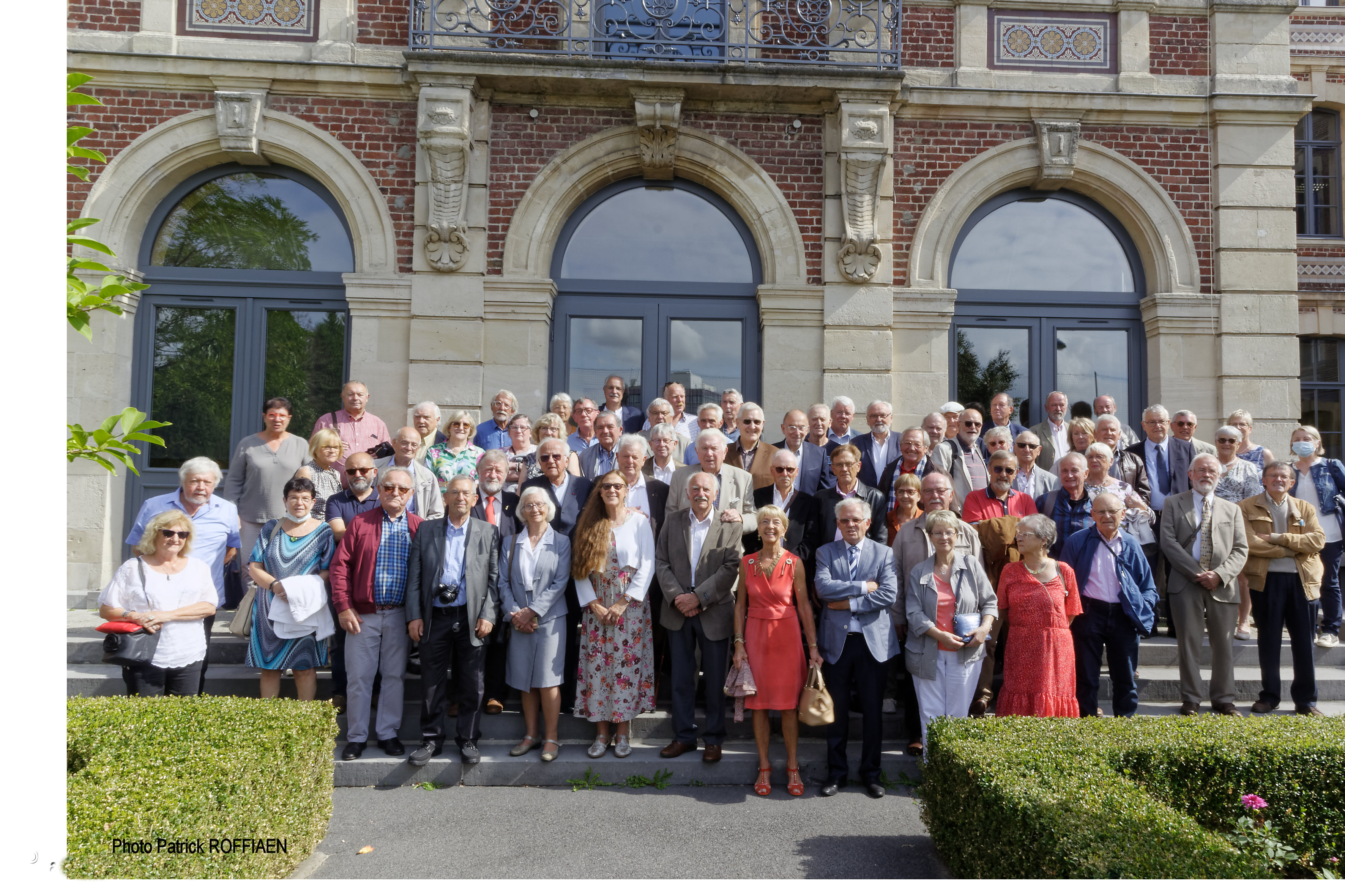 Tous les participants se rassemblèrent sur les marches du perron de la cour d'honneur, à côté du monument aux morts, pour la photo officielle.