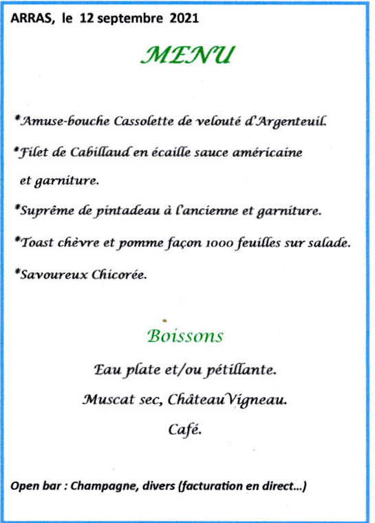 Enfin, avec plus d'un an de retard, l'assemblée générale de l'AAEENA (Amicale des Anciens et Anciennes Elèves des Ecoles Normales d'Arras) a pu se tenir le dimanche 12 septembre 2021, et encore, en prenant moult précautions sanitaires, Pass sanitaire obligatoire, masques, et distanciation. Pas drôle du tout, surtout les masques, pour les durs d'oreille comme moi ! Et du coup, notre "Balade de septembre" au Portel amicalement préparée par Lionel LEPRÊTRE, et déjà annulée l'an dernier, n'a pas pu se dérouler comme prévu le 11 septembre 2021 et a été de nouveau reportée au 10 septembre 2022.