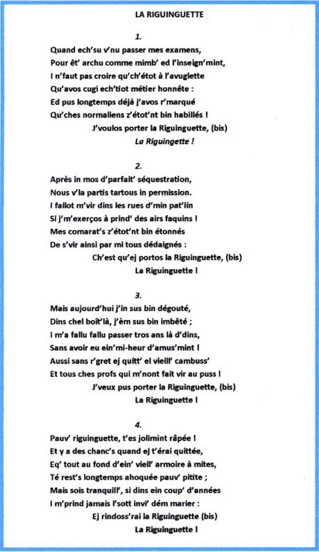 Quant aux normaliens mâles, ils entonnèrent devinez quoi ? ..... La Riguinguette, bien sûr...