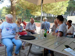 - Un deuxième groupe de copains et copines, moins mobiles, ou fatigués par la chaleur accablante ou, il faut bien le dire, par des problèmes de santé, a préféré s'installer à l'ombre de la buvette du parc pour bavarder et siroter un rafraichissement, mais non sans avoir pu admirer, au prix de quelques pas et de quelques marches, un magnifique point de vue sur l'ensemble du parc.