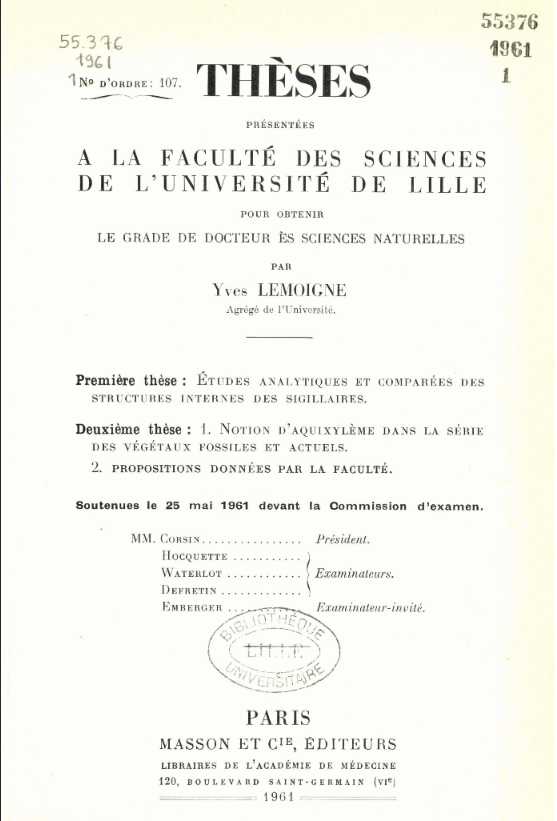 Vignettes Commentaires Source Thèses soutenues le 25/05/1961 à la faculté des Sciences de Lille par Yves LEMOIGNE