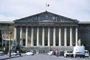 L'Assemblée nationale est composée de députés élus au suffrage universel direct pour 5 ans. Elle vote les lois et contrôle l'action du gouvernement. Elle peut renverser le gouvernement. L'Assemblée nationale siège au Palais Bourbon.
