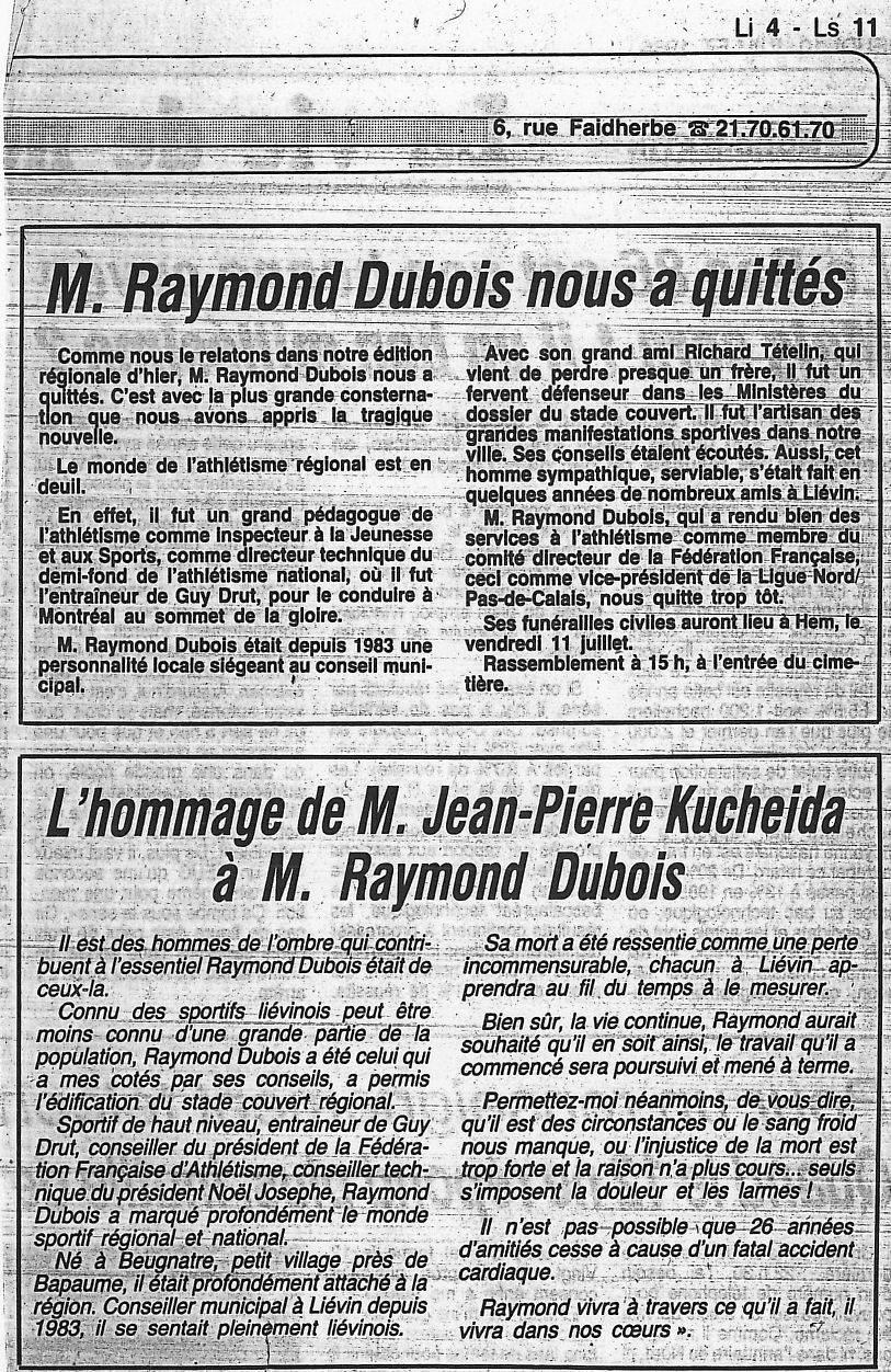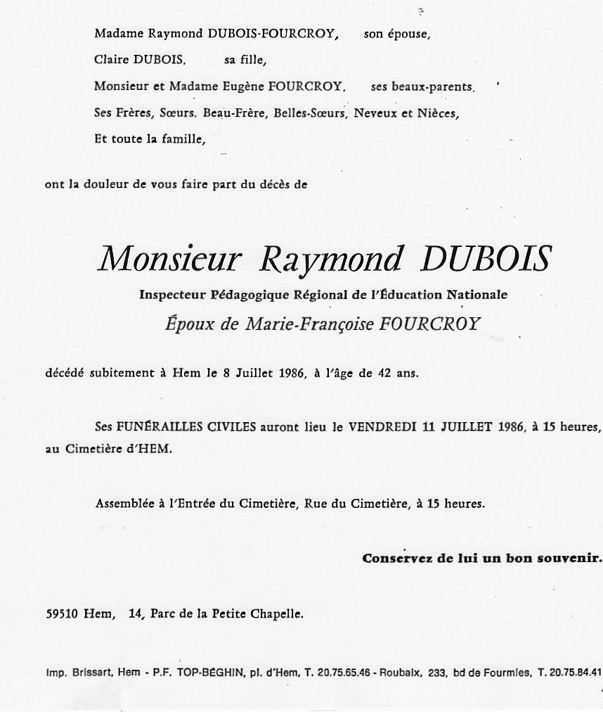 J'ai récupéré auprès de Kuch les nécrologies parues au moment du décès de Raymond Dubois.