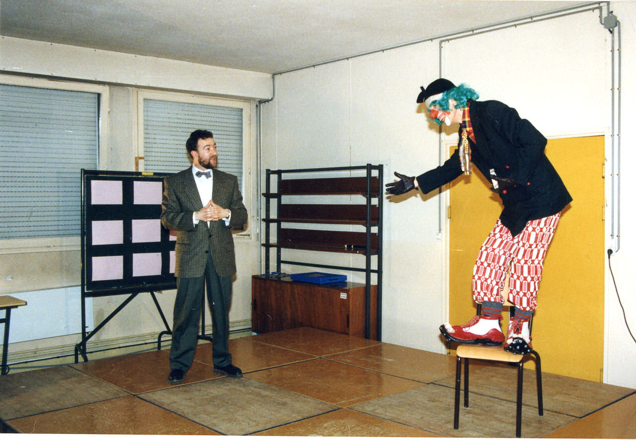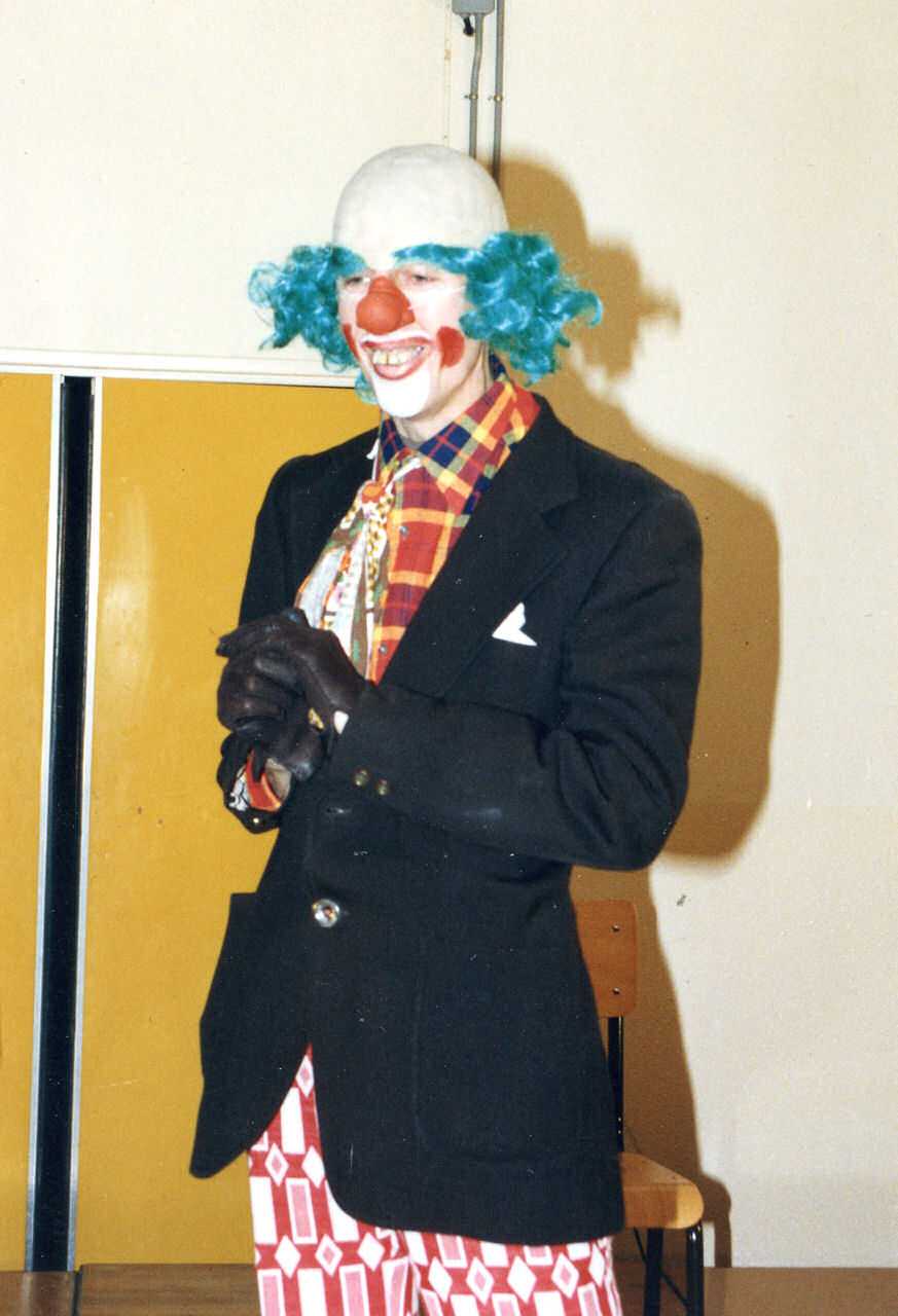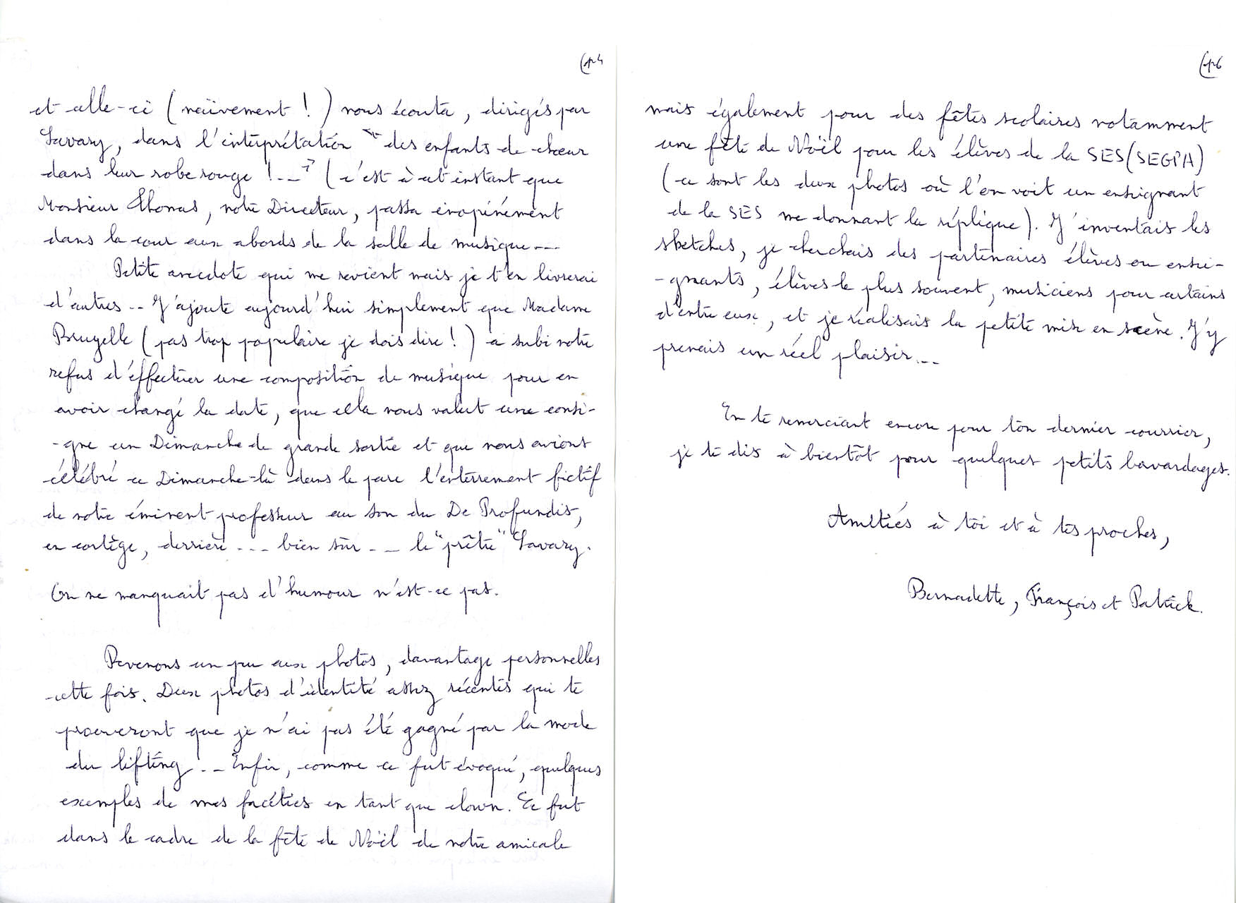 Au cours de ma carrière professionnelle, il m'est arrivé à diverses reprises d'être marionnettiste et même clown (Je pourrais t'en envoyer une photo si cela t'intéresse). J'ai d'ailleurs l'impression, si j'en juge par les propos de mes anciens élèves, que je reste dans leur mémoire davantage un clown passionné d'Histoire qu'un prof tel qu'on l'imagine. Cela te surprendra sans doute, car à l'École Normale d'Arras, j'étais plutôt discret, voire timide (Beaucoup moins à l'École Normale de Lille)"