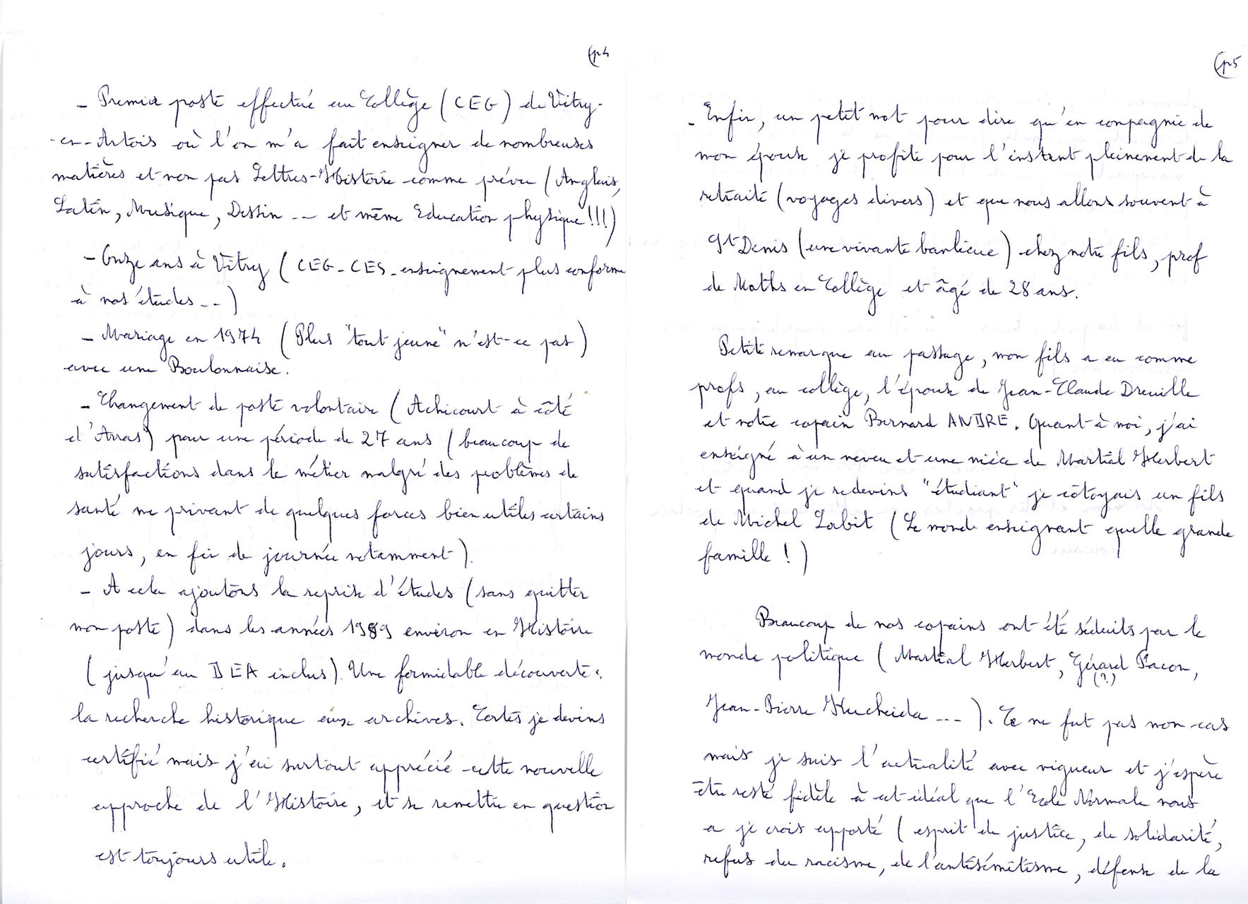 - 1976-2003: Collège d'Achicourt. "Changement de poste volontaire pour une période de 27 ans. Beaucoup de satisfaction dans le métier malgré des problèmes de santé me privant de quelques forces bien utiles certains jours, en fin de journée notamment".