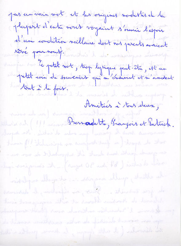 "Petite remarque au passage: mon fils a eu comme profs, au collège, l'épouse de Jean-Claude DREUILLE, et notre copain Bernard ANDRÉ. Quant à moi, j'ai enseigné à un neveu et une nièce de Martial HERBERT, et quand je redevins étudiant, je côtoyai un fils de Michel LABIT (Le monde enseignant, quelle grande famille !)"