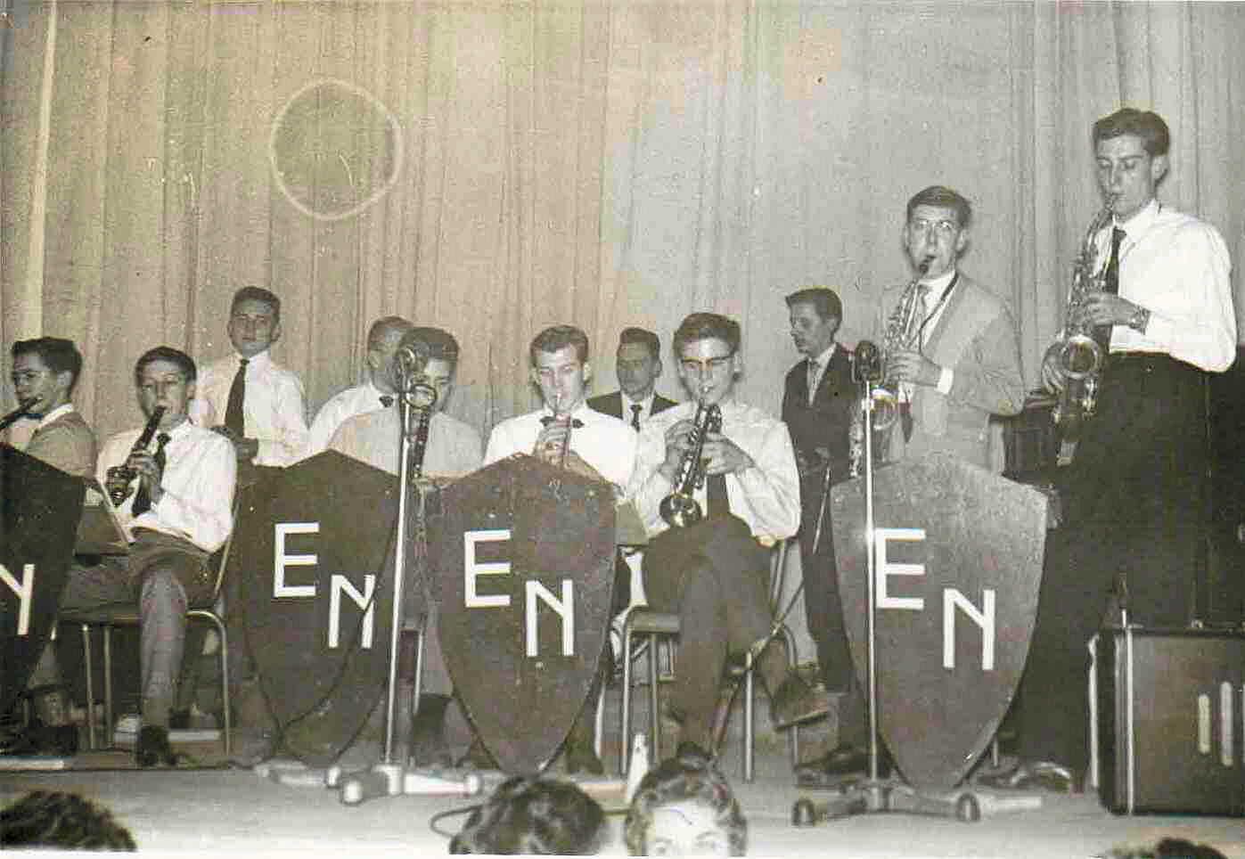C'est ainsi que s'appelle, comme vous le savez tous, l'orchestre de l'ENG Et, cette année encore, nombreux sont ceux qui apportent leur "don" au service de la camaraderie normaliens - normaliennes. L'effectif n'a pas beaucoup changé; le recrutement, qui s'est effectué assez sévèrement pour de bonnes auditions sous l'œil des Anciens, a appelé dans la formation 2 à 3 "Mulets" et un "P1" Nous n'énumérons pas les "Vieux".