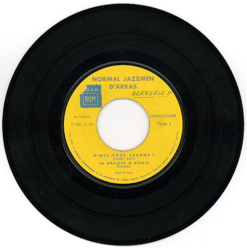 Trouvaille : Notre camarade Jean-Pierre BERNABLE, du fin fond de ses Pyrénées Orientales, a retrouvé dans ses archives un 45 tours enregistré par le Normal Jazzmen.