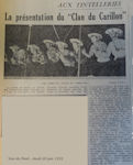 Après avoir tant de fois chanté les cloches, le groupe vocal décida d'adopter ce nom de "Clan du Carillon".Ce groupe vocal existait encore en 1960-1961, quand nous étions "mulets". Les cloches du Carillon de l'ENG se sont tues avec la sortie de la promo 57-61. Dommage !