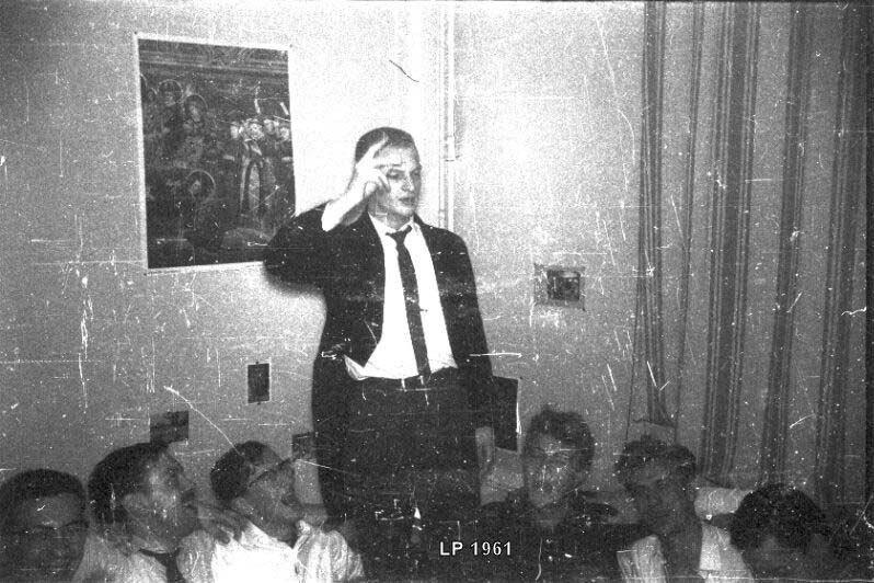Notre Maître ès chansons paillardes Yves HERBIN, dit Filasse , dirigeant le choeur des pions un soir de beuverie dans notre piaule du dortoir B.