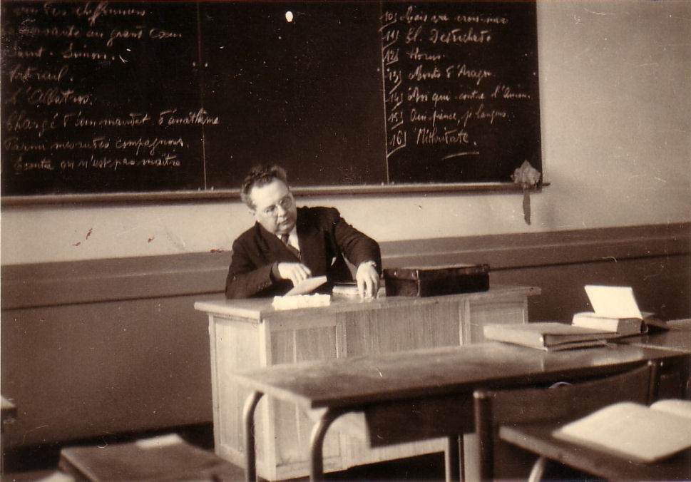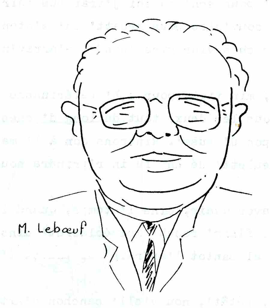 Moïse LEBOEUF, notre professeur de français, nous dictait ses cours magistraux à une vitesse telle qu’il nous fallait un certain entraînement pour réussir à les copier in extenso. Il nous demandait d’apprendre une grande quantité de pièces de vers. C’est ainsi qu’il nous a fait aimer les plus grands : les classiques, les romantiques, les parnassiens. Il m’en reste encore quelque chose. Merci Monsieur LEBOEUF ! (Bulletin de l'Amicale n° 52, mars 1992)