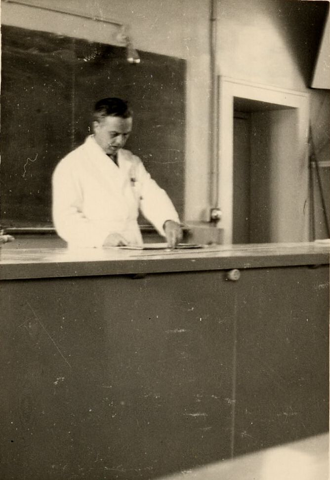 Je ne sais pas pourquoi ni comment , je me suis souvenu d'un coup d'un "fait divers" nous concernant . Nous étions en 3ème année, en sciences naturelles . Toute la classe était debout , autour de la paillasse de Ch' Ti Mait', devant le tableau. Il procédait à une dissection de je ne sais plus quoi. Tu étais à côté de moi, sur ma gauche. Il régnait une assez forte odeur d'éther. Petit à petit (sic), tu t'es mis à t'appuyer sur moi. Puis la pression à augmenté, ce qui m'a fait croire que tu déconnais. Je me suis dégagé ... et tu t'es affalé, de tout ton long (re-sic). Et tout le monde s'est aperçu que tu étais tout bonnement dans les vaps. Ch' Ti Mait' nous a fait nous écarter pour te laisser respirer. Puis tu es revenu à toi.