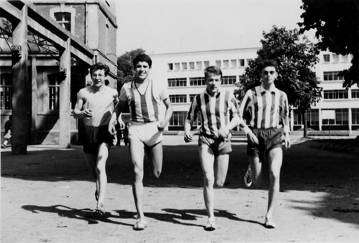 A toute heure du jour (mais pas de la nuit, quand même !), il n'était pas rare de rencontrer un ou plusieurs normaliens en train de courir autour de la cour, sauter en hauteur, en longueur ou à la perche, lancer le poids ou le javelot, ... chacun essayant de battre ses records personnels avec les encouragements des petits copains !