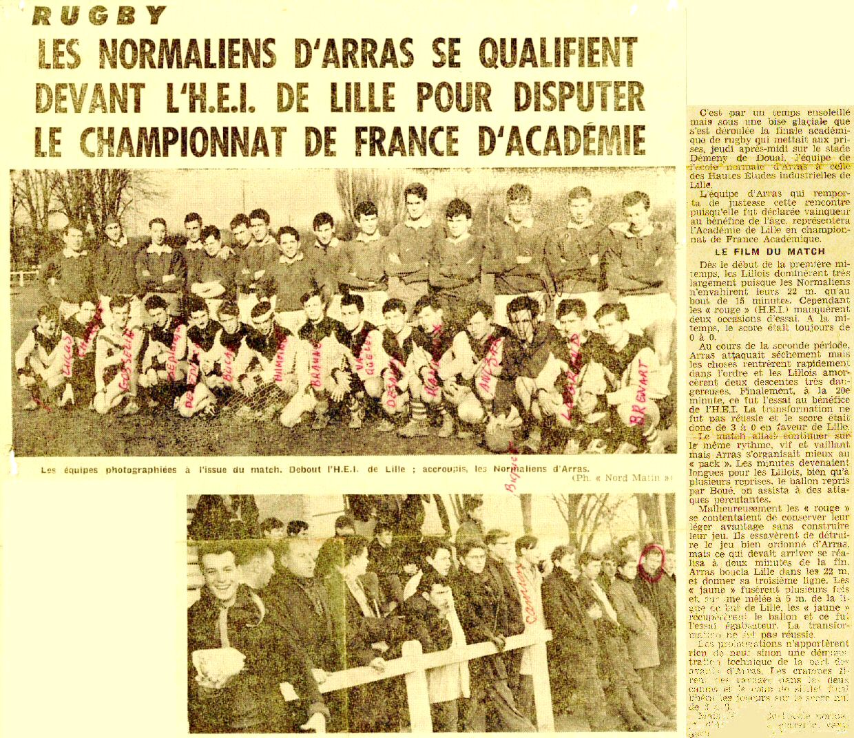 N'empêche que en 1964, "on" a été finalistes académiques contre les durs de l' H.E.I de Lille (École des Hautes Études Industrielles), et "on" a gagné ! 3 à 3 ! ...au bénéfice de l'âge !