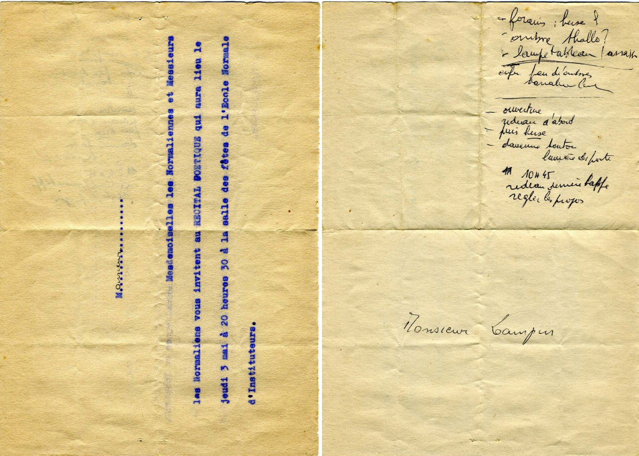 Pierre LAMPIN a retrouvé différents documents ayant trait à cette soirée poétique et théâtrale du 3 mai 1962.