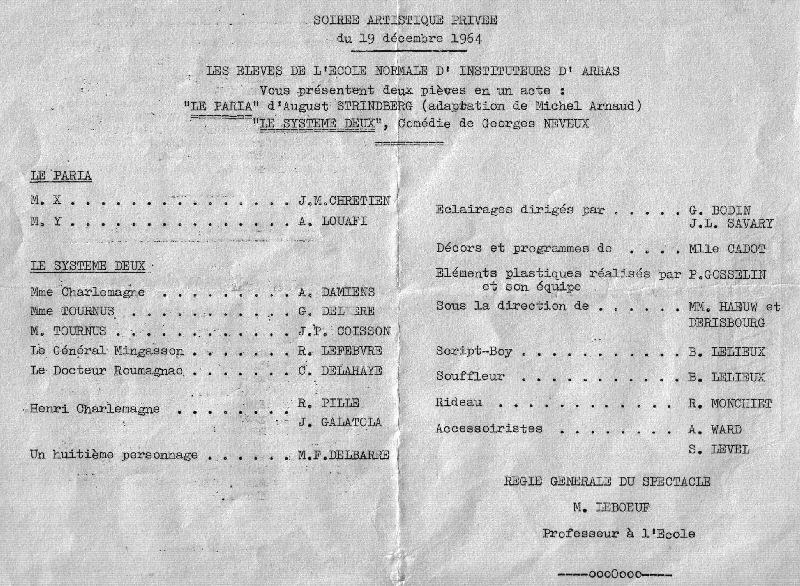 L'activité théâtrale à l'EN est indissociable du nom de Moïse LEBOEUF, professeur à l'École Normale d'Instituteurs d'Arras de 1946 à 1971.
